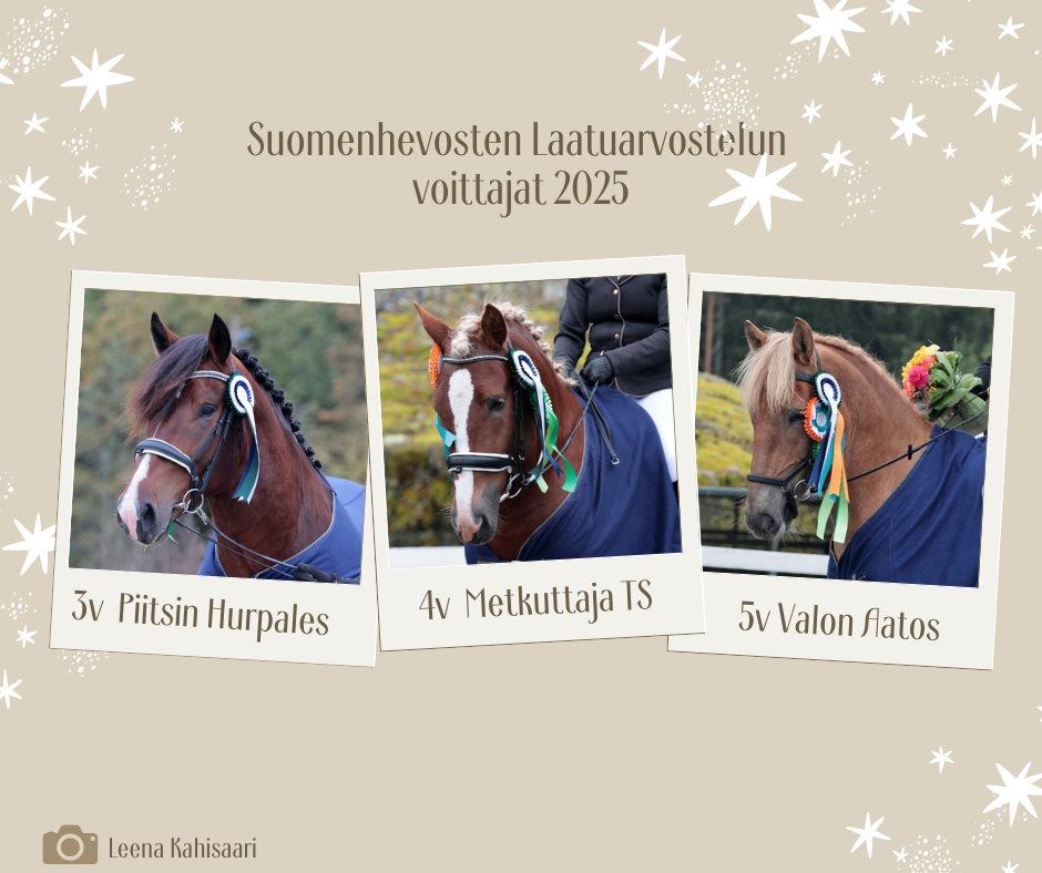 Tapahtuman tarkemmat tiedot sekä tulokset löytyvät Hevosopiston nettisivujen kautta; Suomenhevosten Laatuarvostelun Finaali